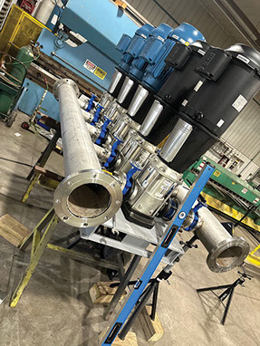 Modular skid systems are built off-site where the components are fabricated and fitted onto the frame. The entire pump system – pump(s), motor, piping, valves, control panel – are assembled onto a steel supporting skid. The packaged skid system is then delivered to your facility where it is installed.